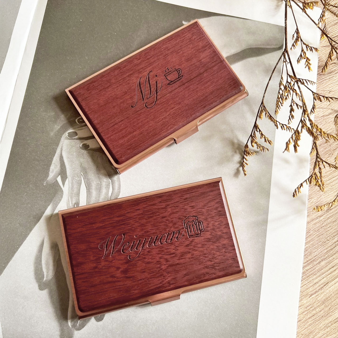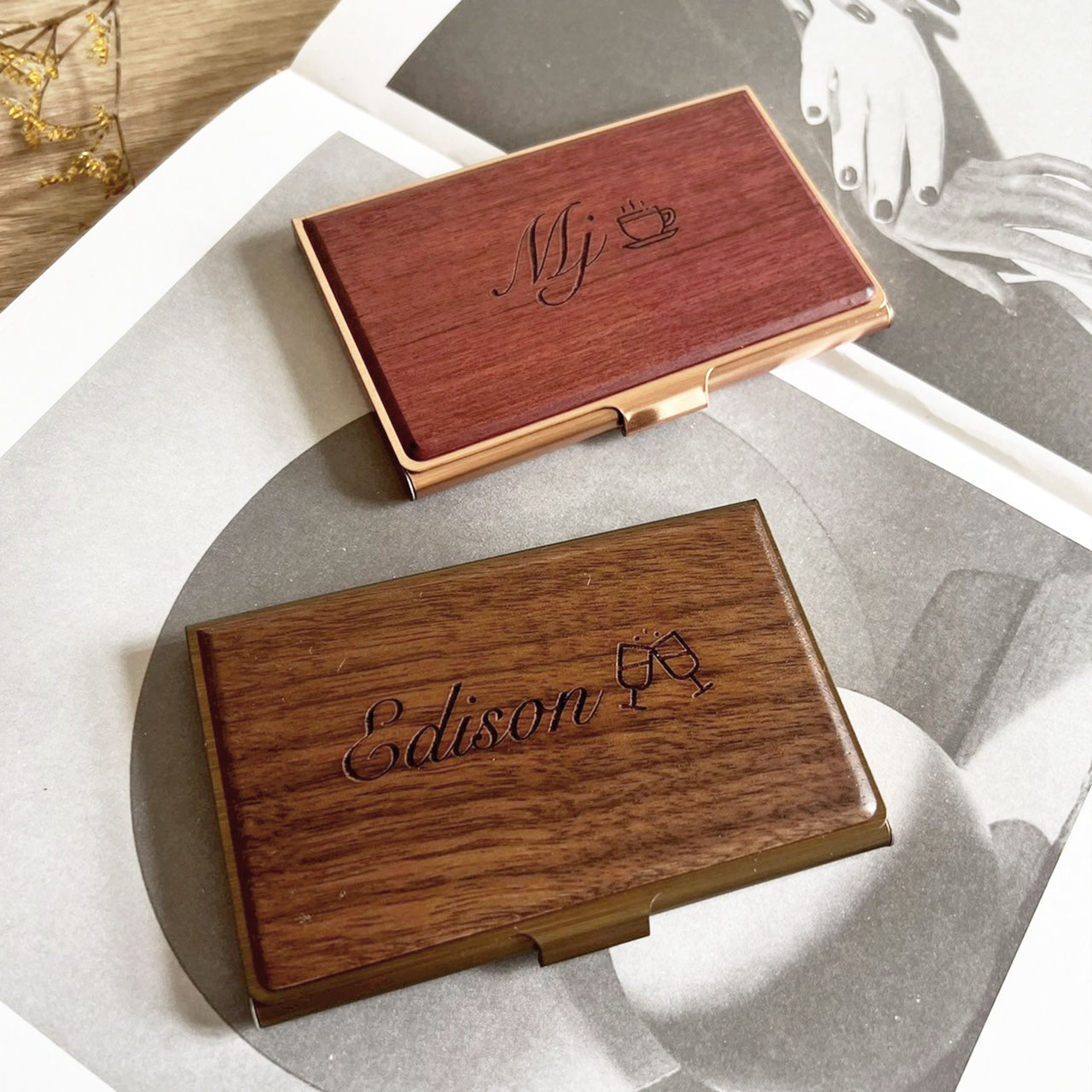 【專屬客製】你的名字 實木拼金屬名片禮盒