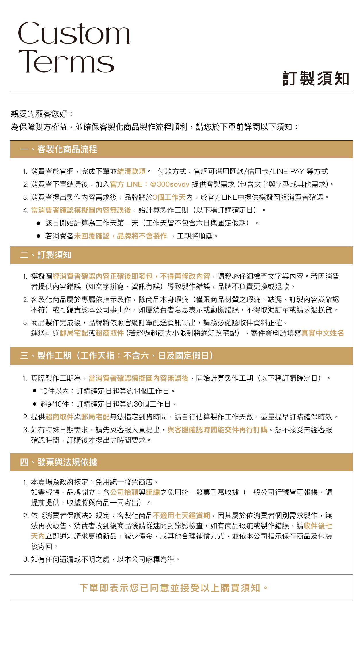 客製化商品訂購須知