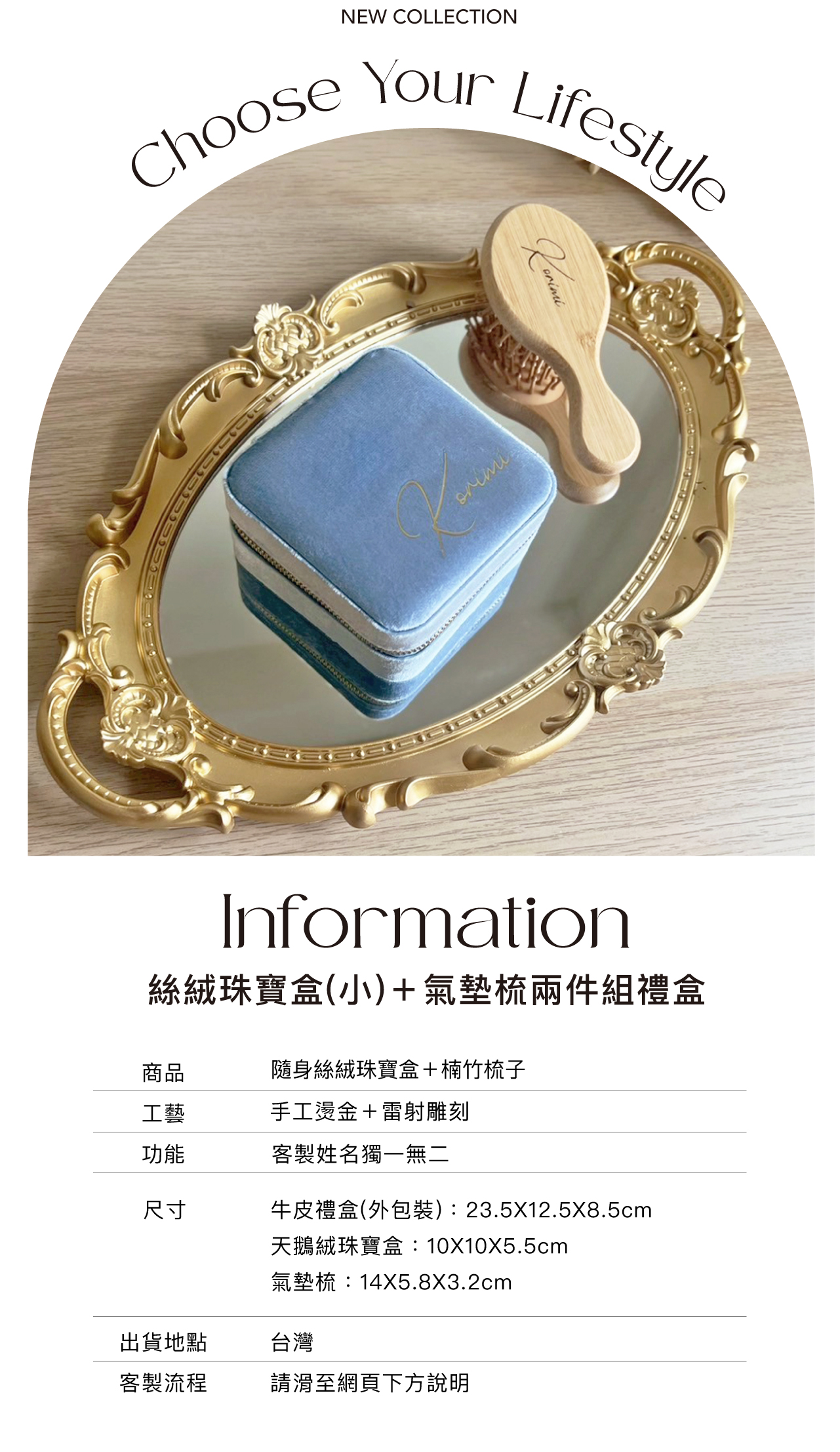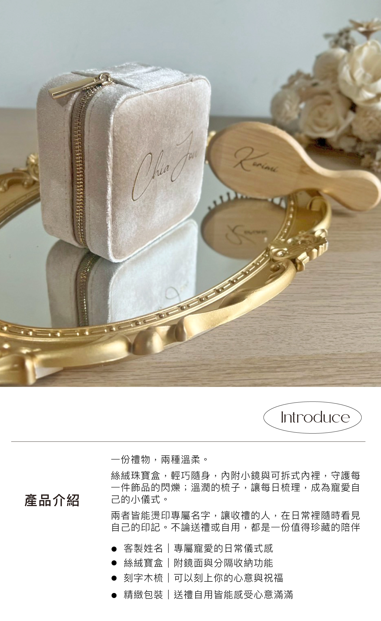 【專屬客製】絲絨珠寶盒(小)+ 梳子禮盒