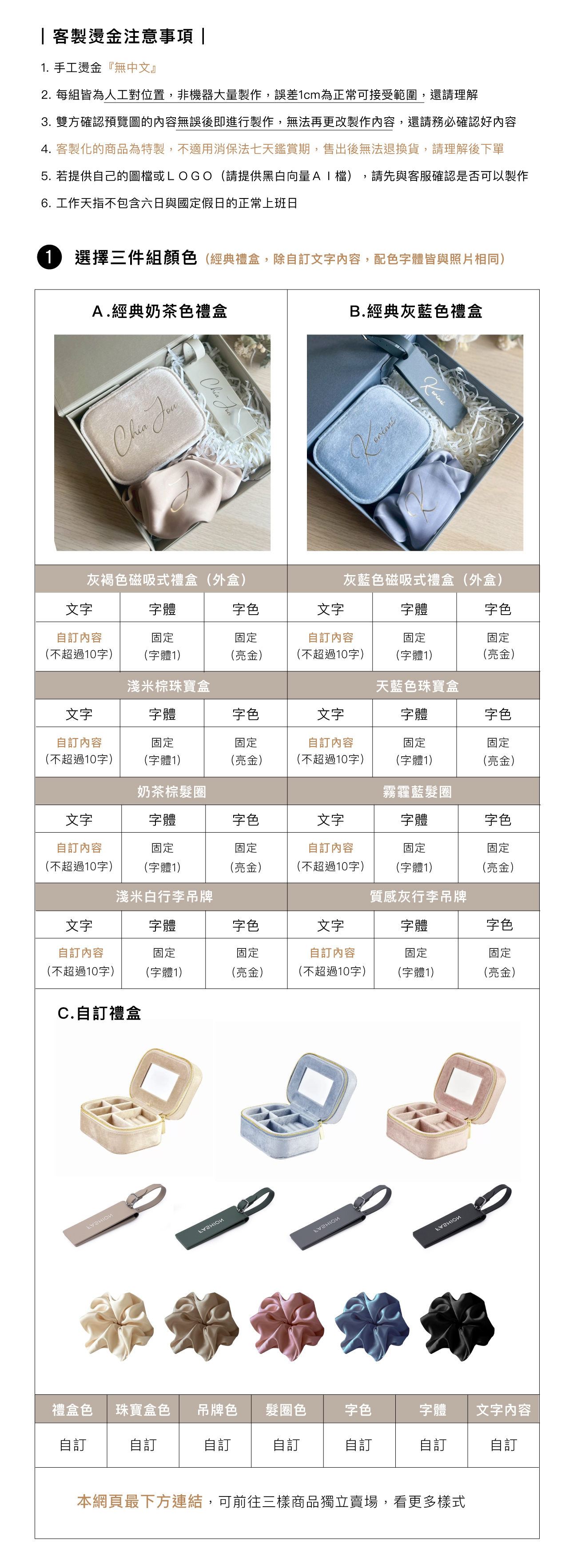 【高級客製磁吸盒】 絲絨珠寶盒(大)+行李吊牌+髮圈