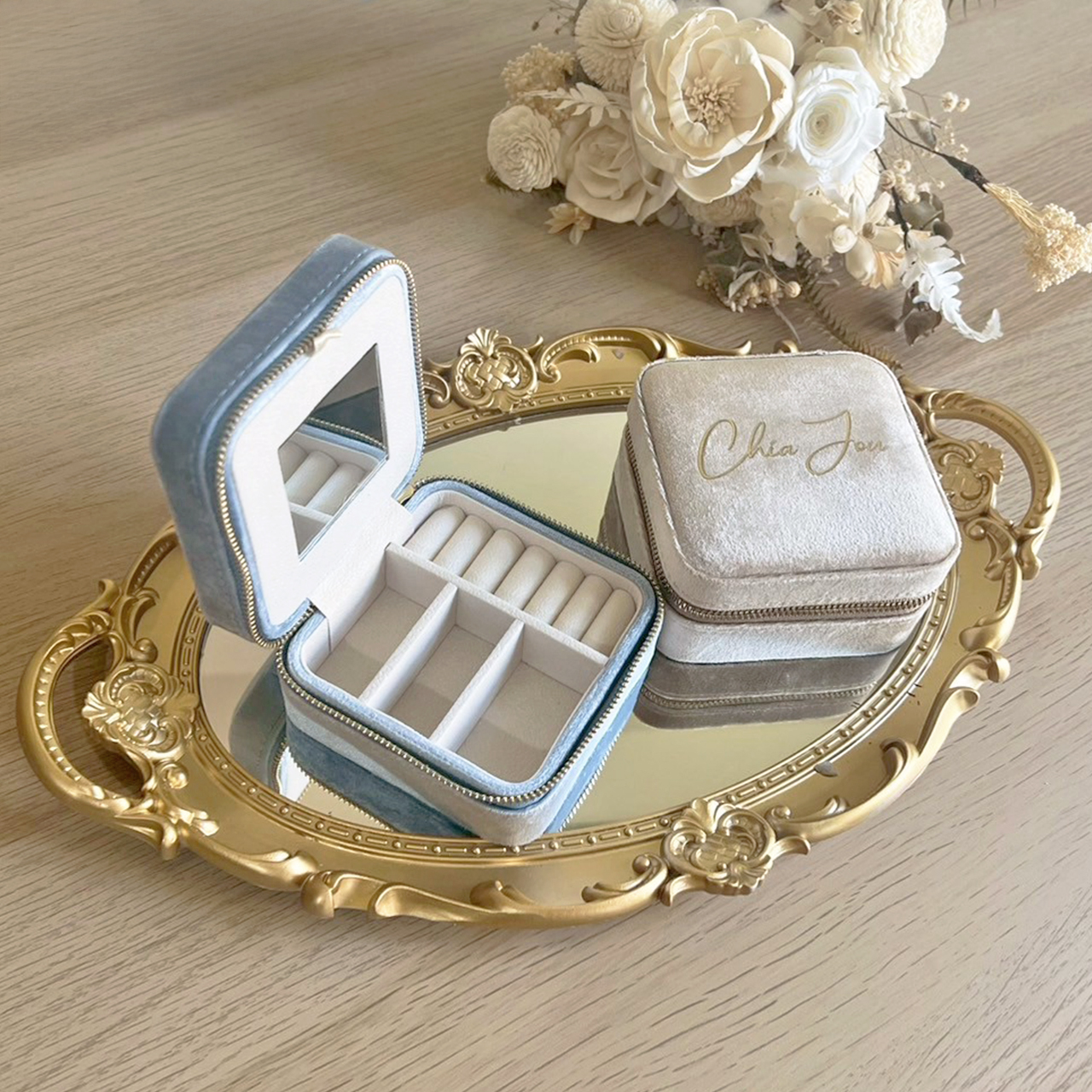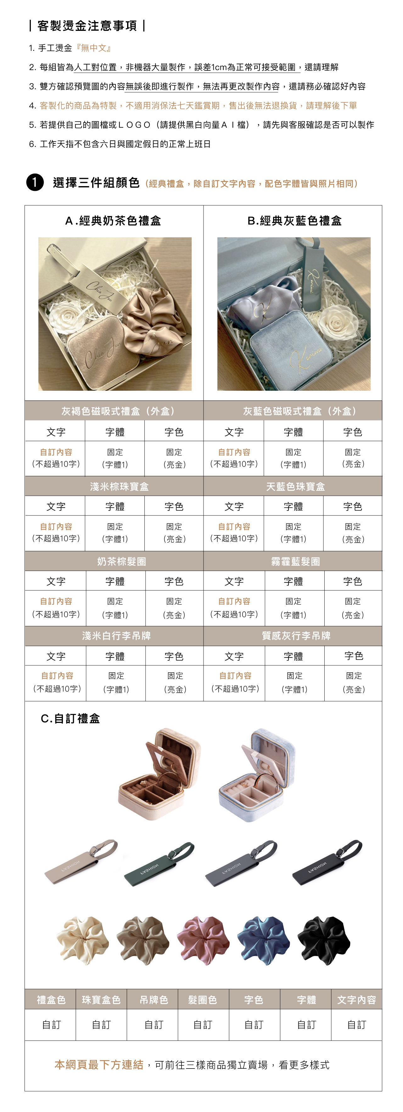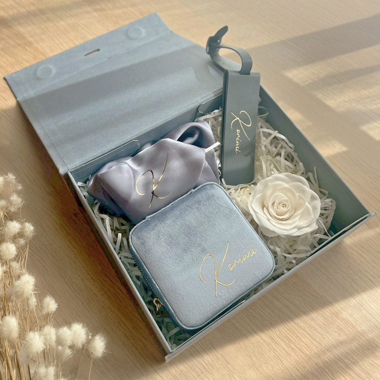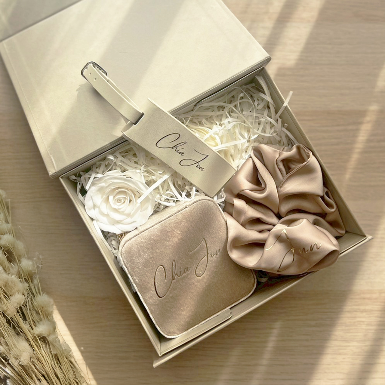 【高級客製磁吸盒】 絲絨珠寶盒(小)+行李吊牌+髮圈 三件組禮盒